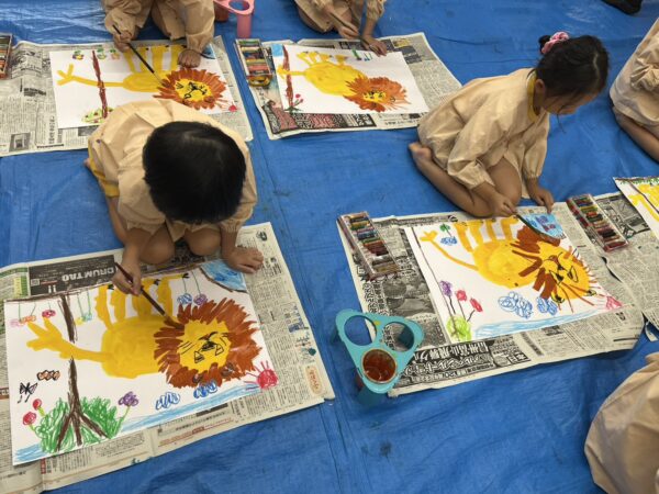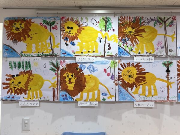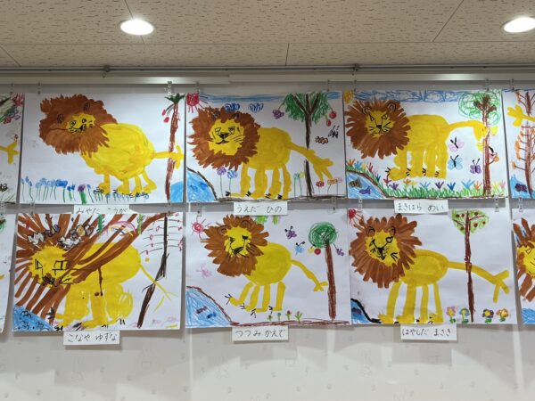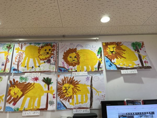 昨日絵画教室で描いたライオンの絵を玄関に飾りました!