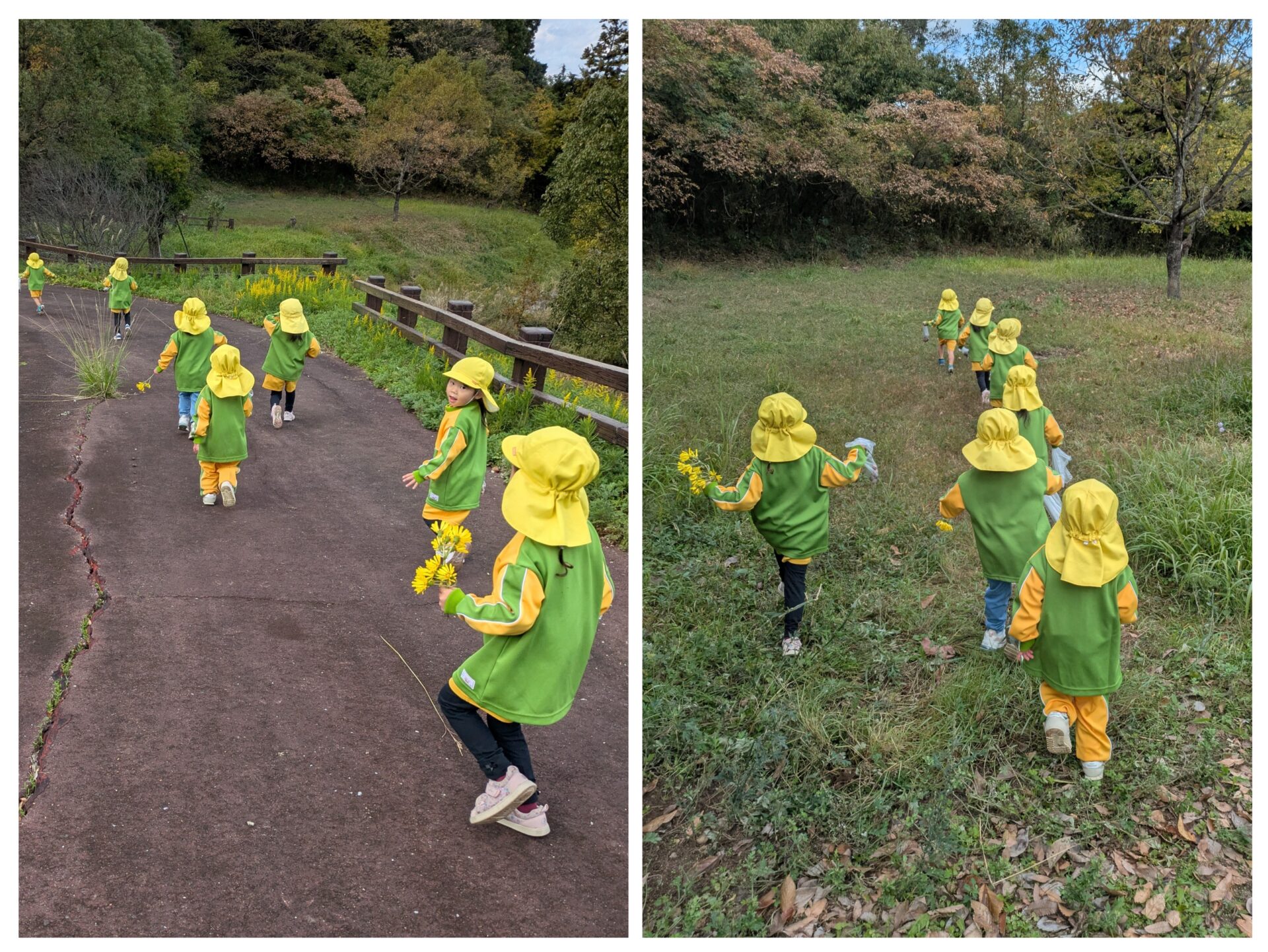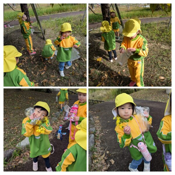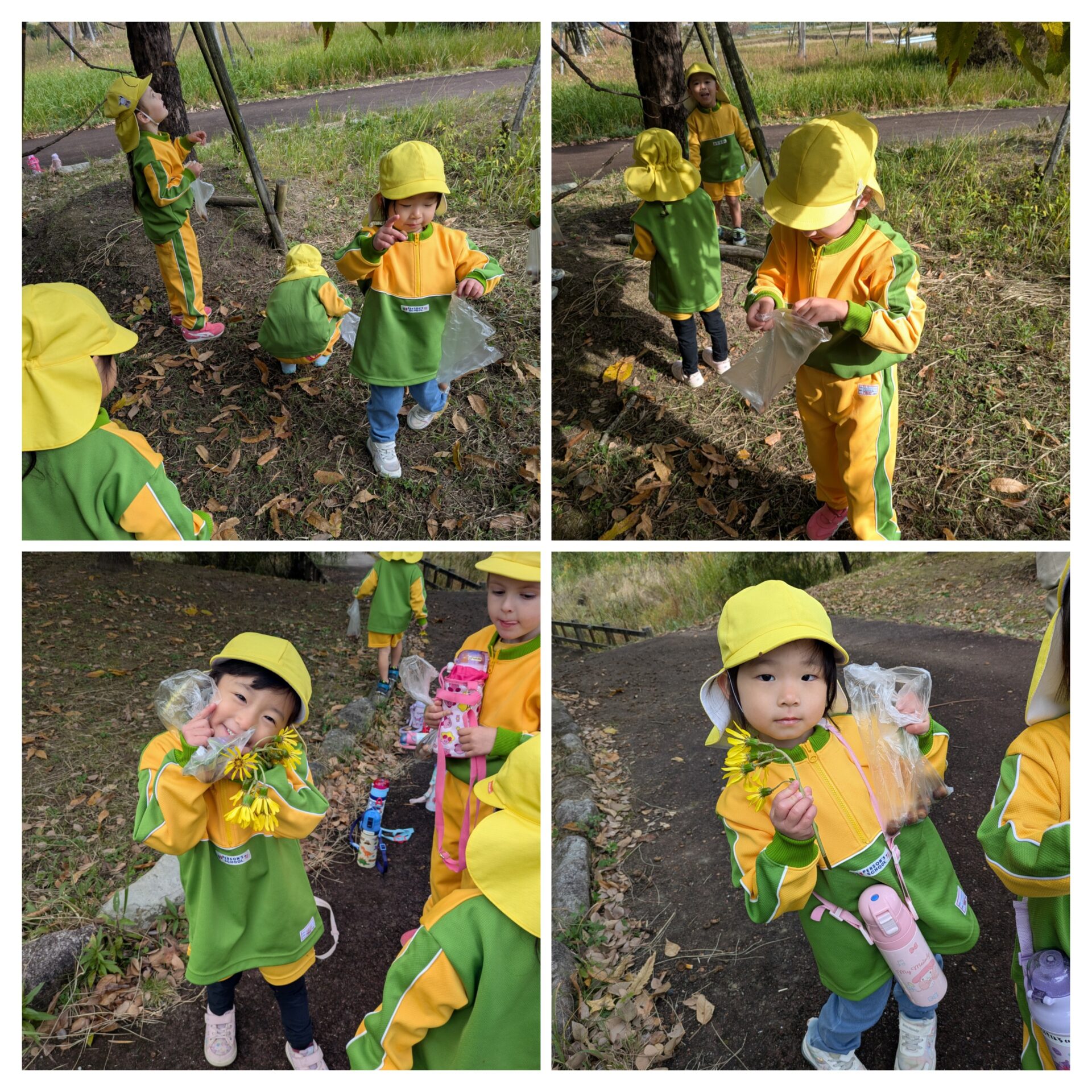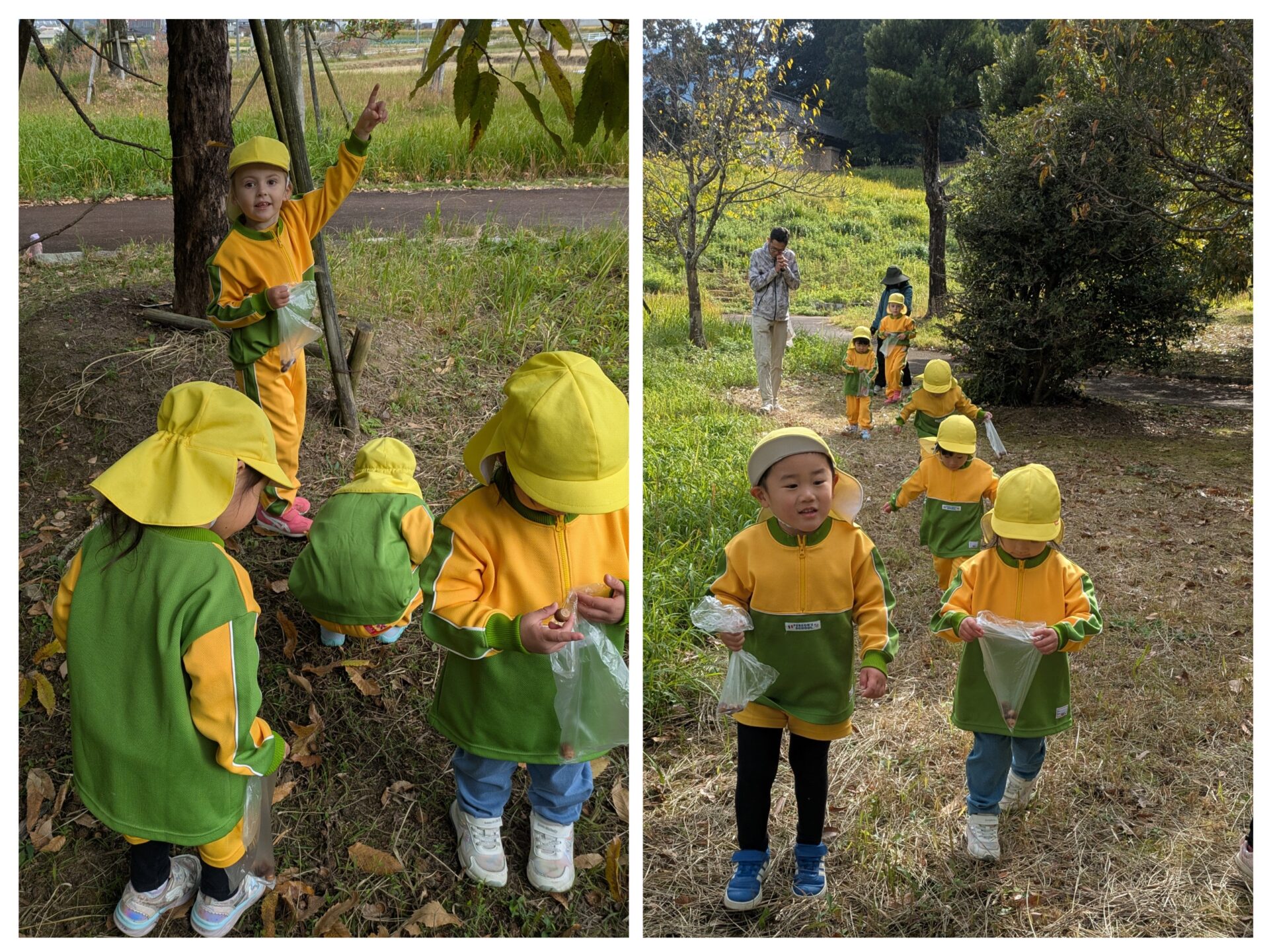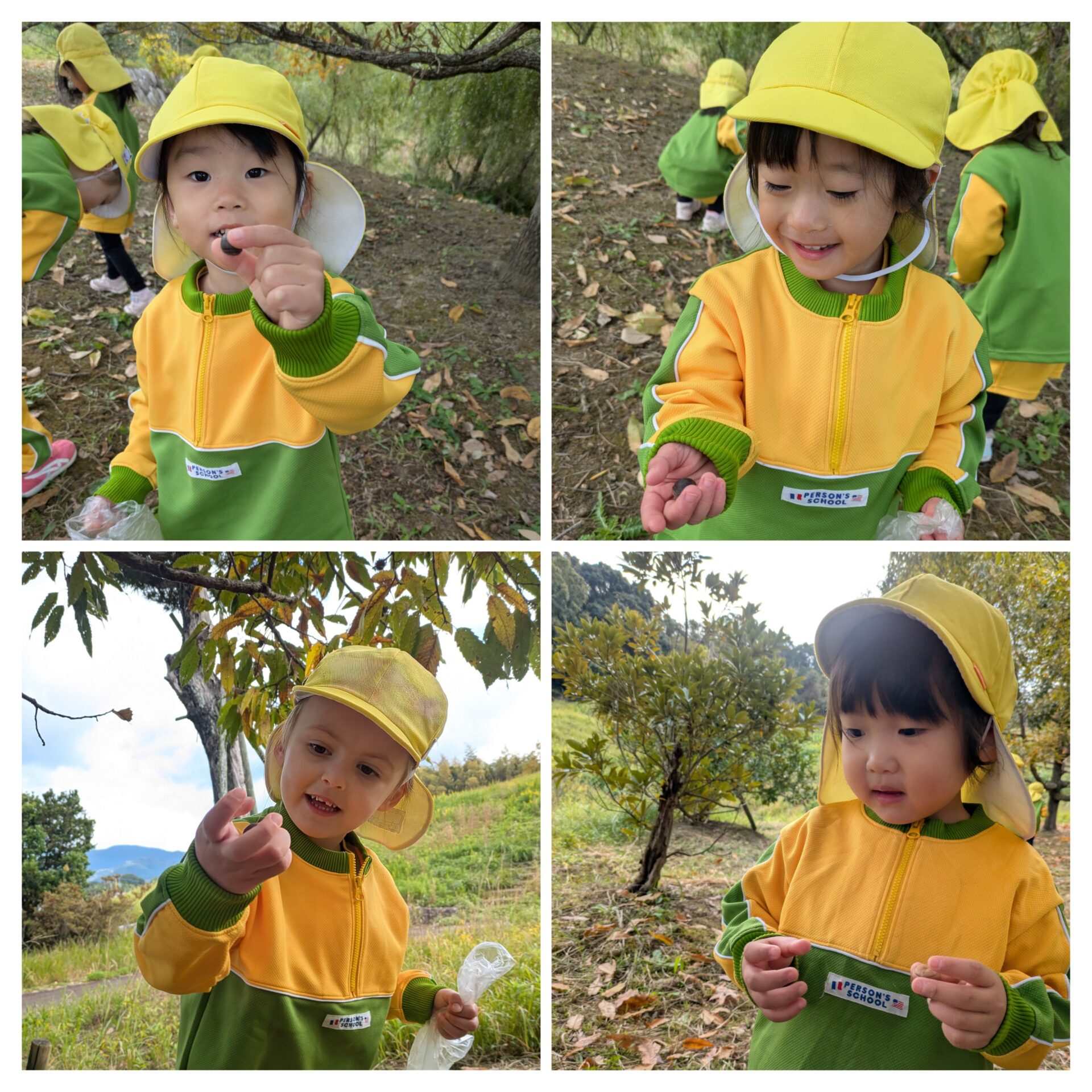 旅石公園でどんぐりを拾ったり、落ち葉を踏んで遊びました😁