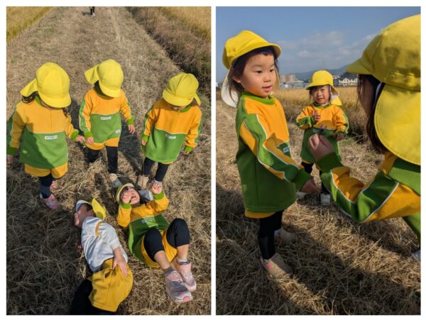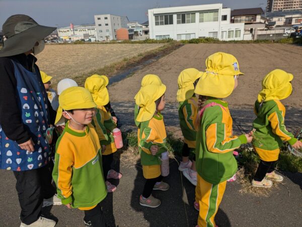 あぜ道にお散歩に行きました。日差しがぽかぽかして、とても気持ちよかったです😊 れんげ草の種をまいた畑の様子が気になるようです。お花が咲くのをとても楽しみにしています😉