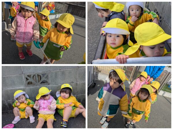 道端に咲く花や落ちている枯れ葉に興味津々の子どもたちでした☺️