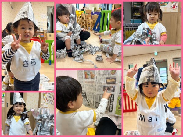 うさぎ組さんは新聞紙遊びを楽しみました😃