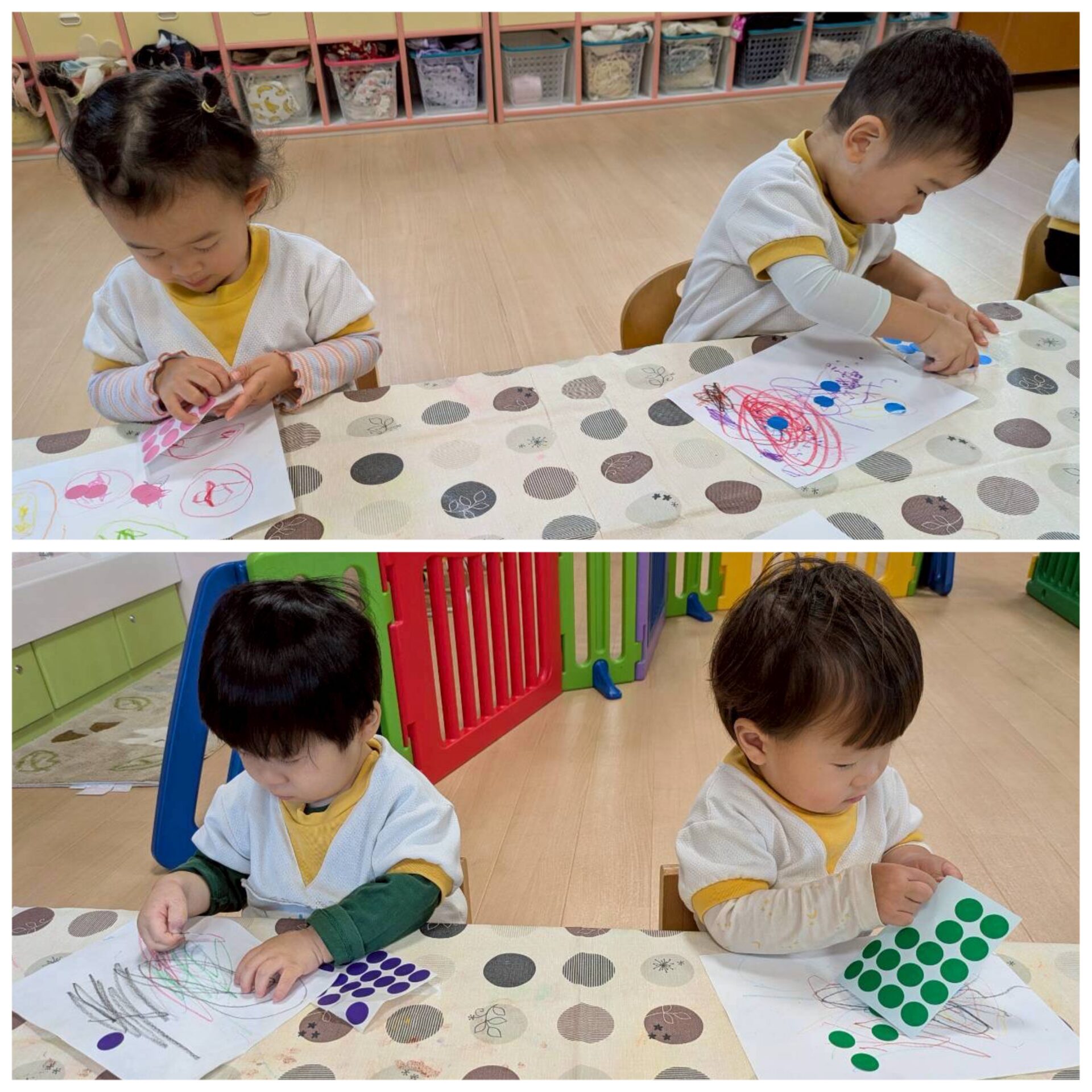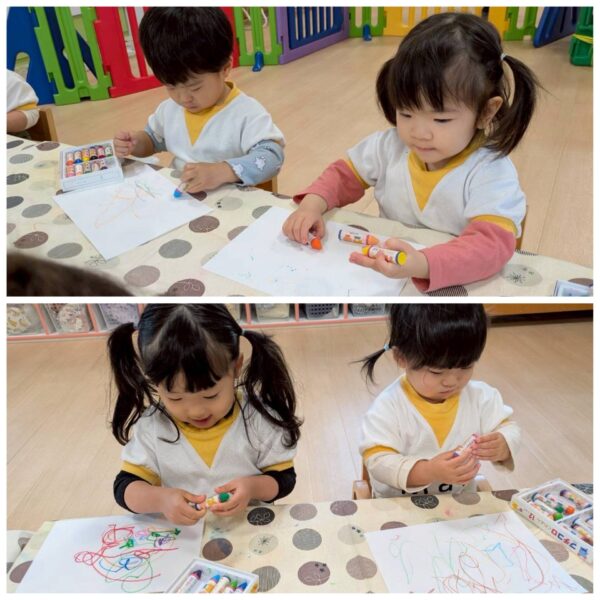 クレヨンやシールを使って遊びました!
