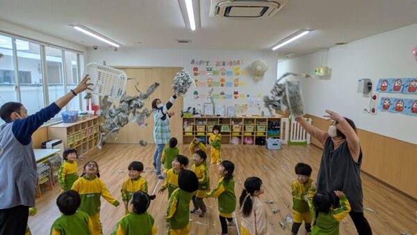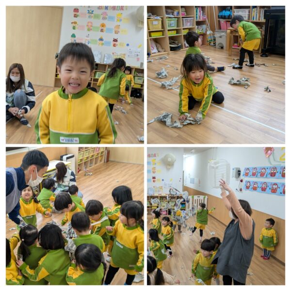 節分も近いことから、「おにはそと!」と投げて遊ぶ子もいました。