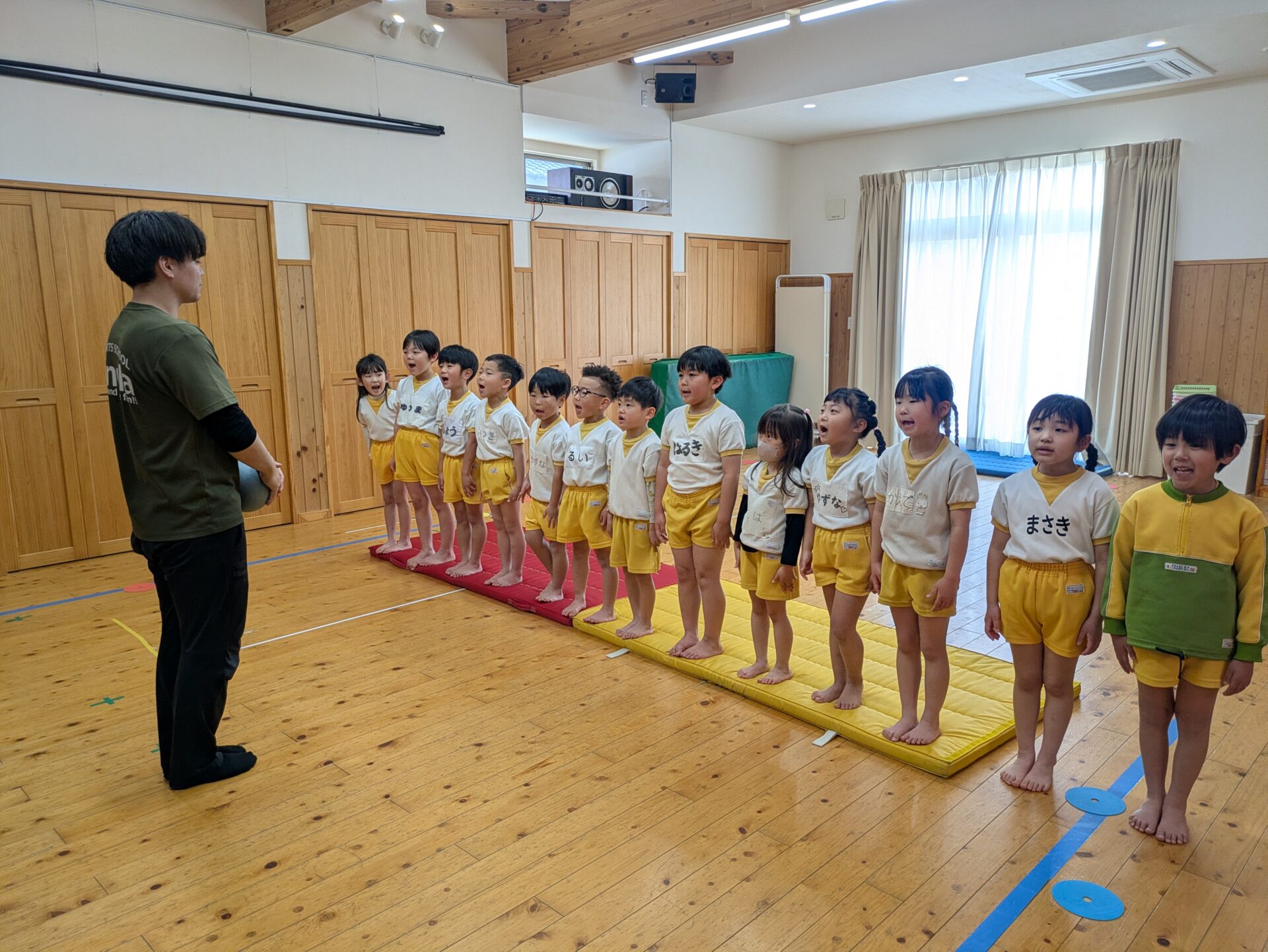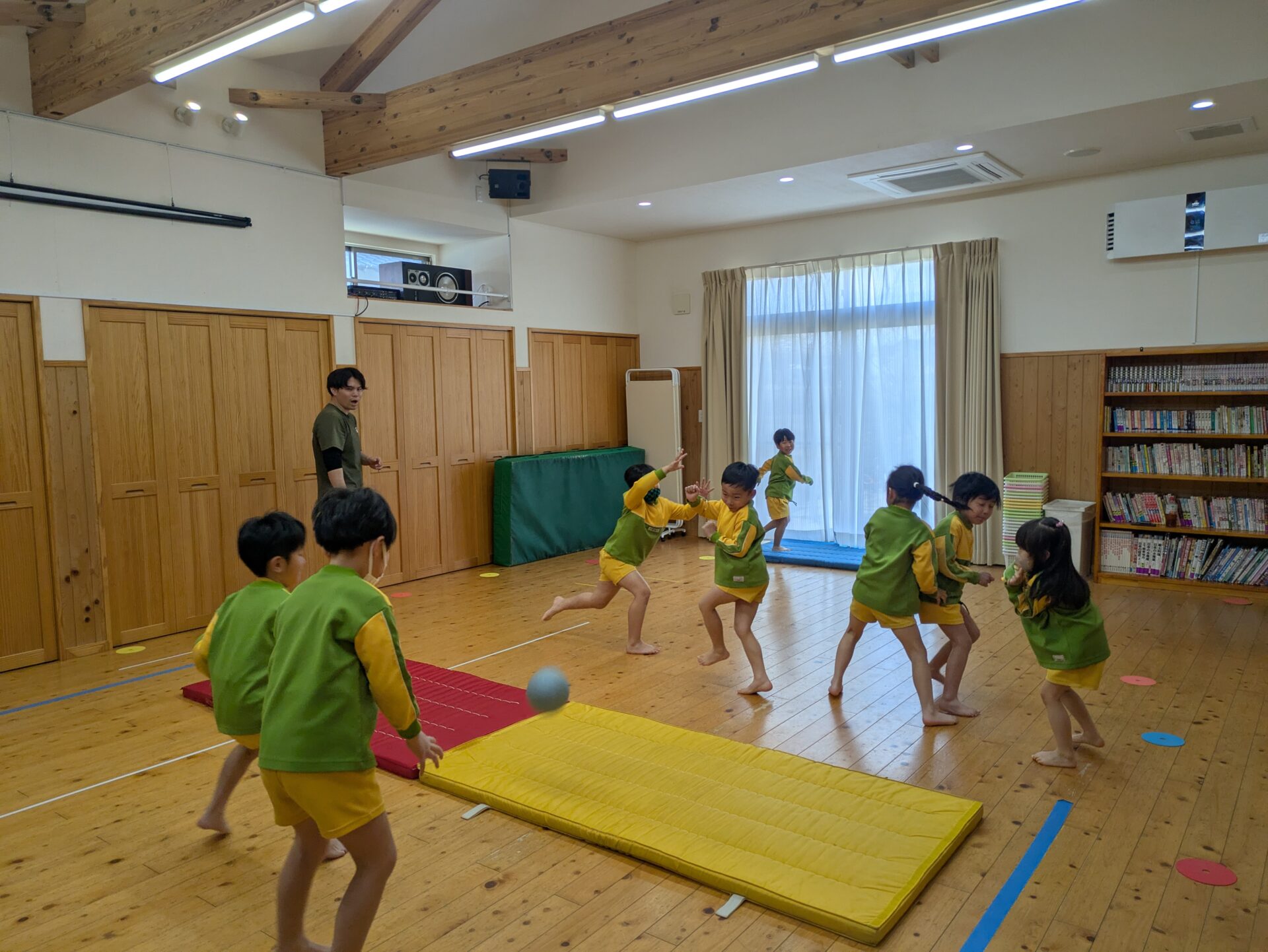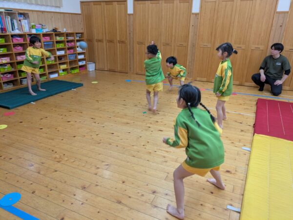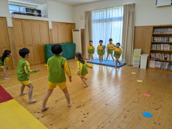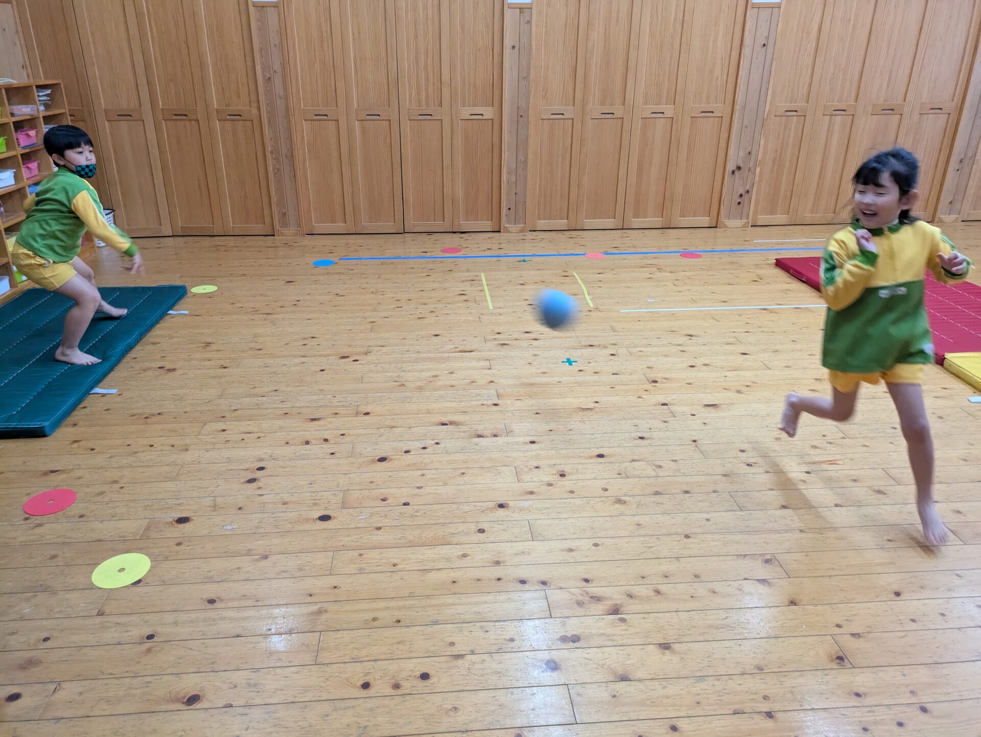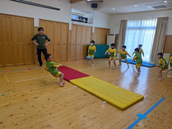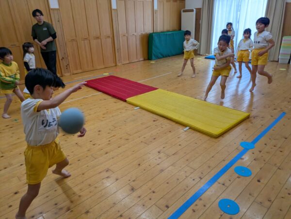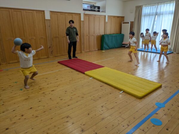体操教室でドッヂボールをしました!ボールを投げるのも逃げるのも上手になって、白熱した戦いを観戦しているのも楽しかったです😊