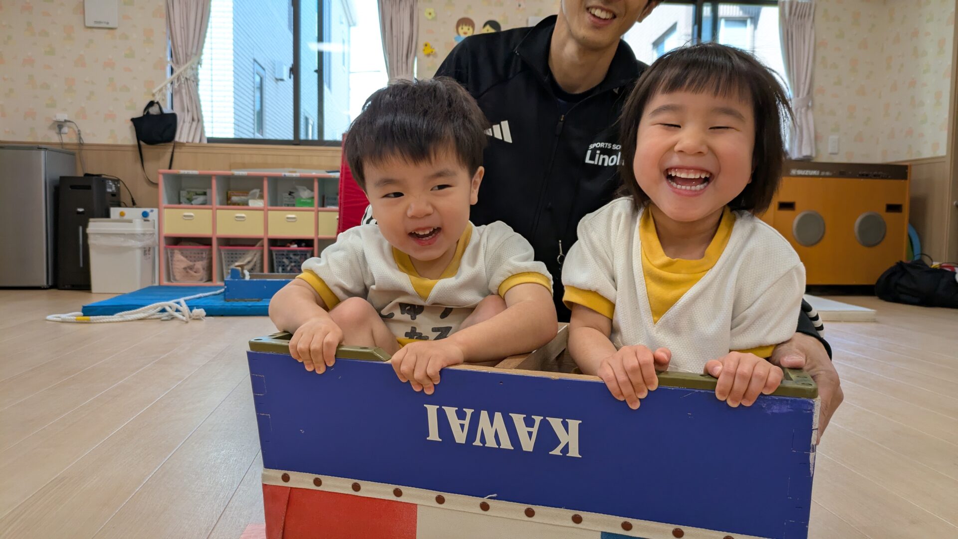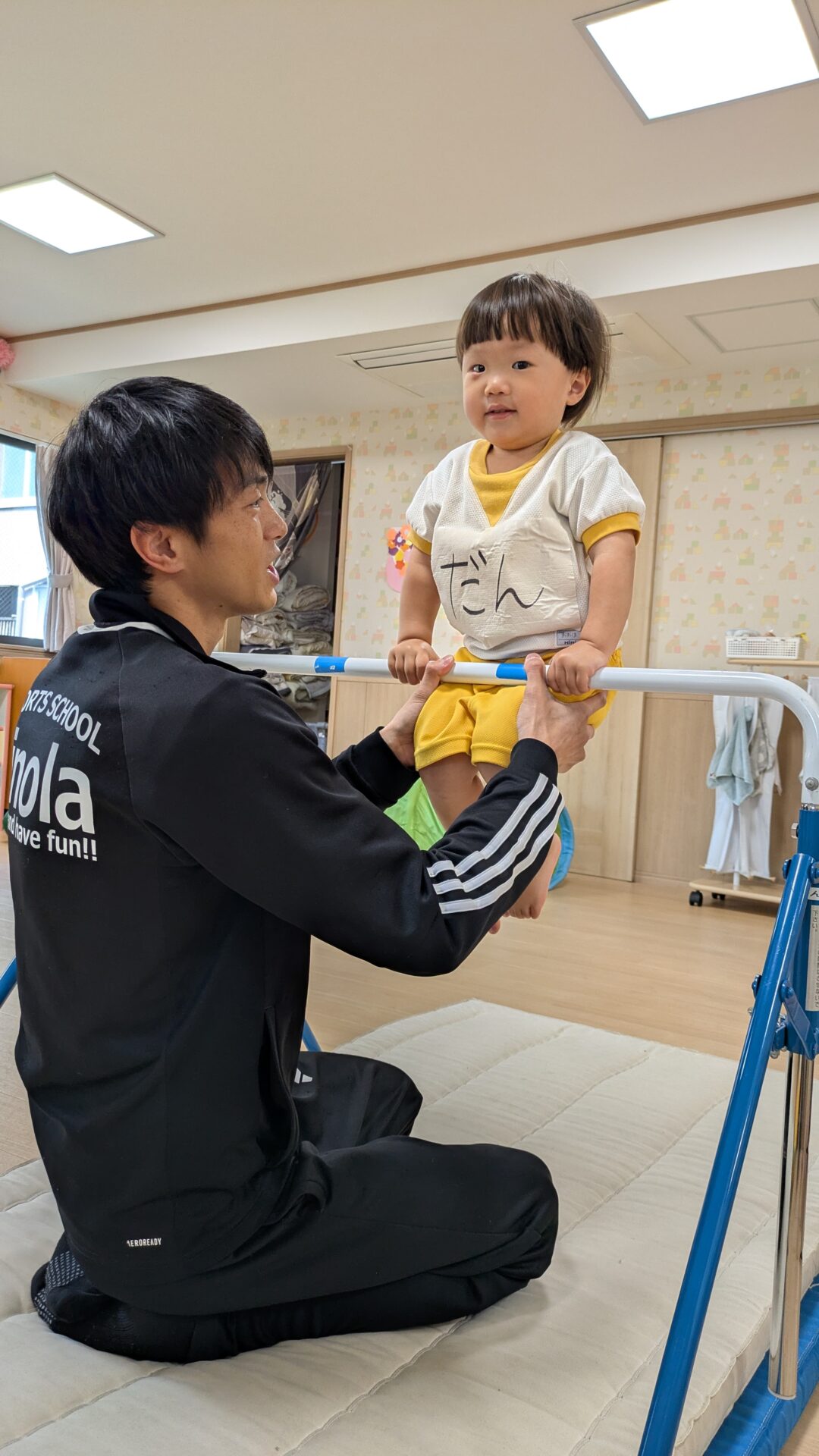 最初は人見知りで泣いていた子供たちもではすっかり指導の先生と仲良くな楽しんで参加することができるようになりました。