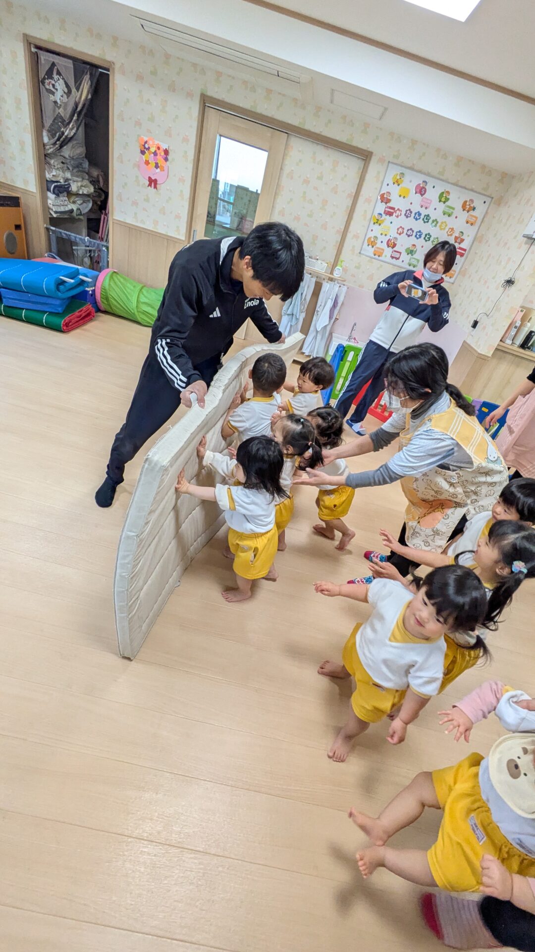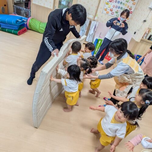 ぱんだぐみさんはりんごの木最後の体操教室でした。いろんなことができるようになって、指導の先生も成長を感じていました。