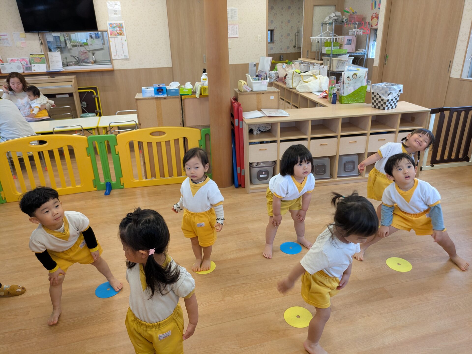 ゆめのたね4月14日(火) 今日は体操教室がありました。 中山先生と一緒に、体を沢山動かして楽しみました。マットや跳び箱などを使いながら、子どもたちは元気いっぱいに参加してましたよ。笑顔もたくさん見られ、充実した時間となりました!