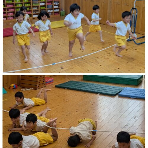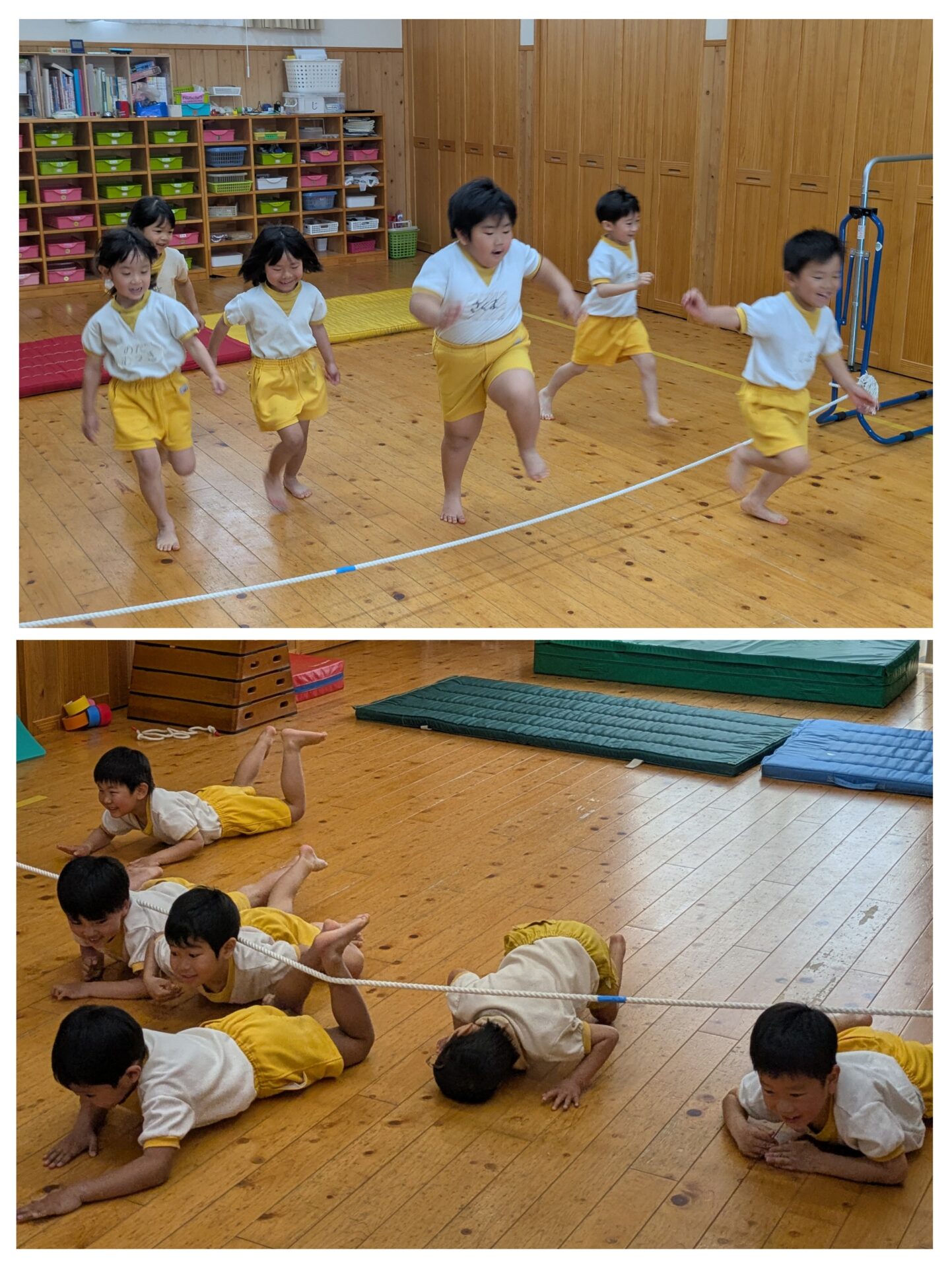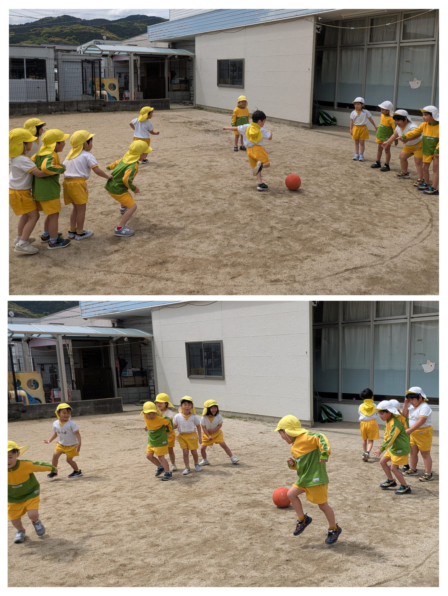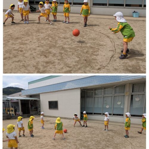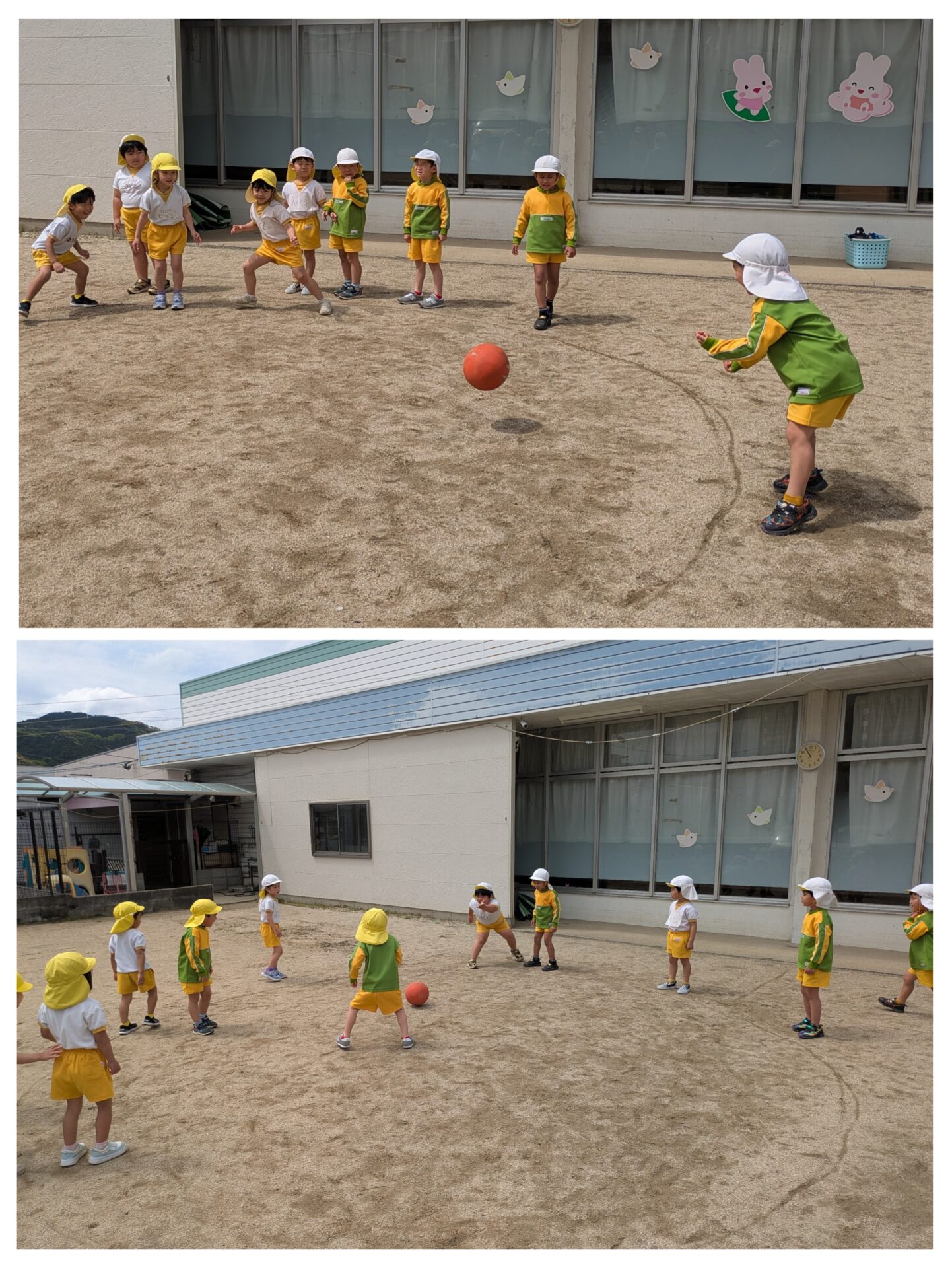今日は転がしドッヂボールをしてあそびました。初めてだったので最初はどう転がしたらいいのか戸惑いも見られましたが、慣れてくるとねらいを定めて転がしたり、力を入れて転がすことができていました!