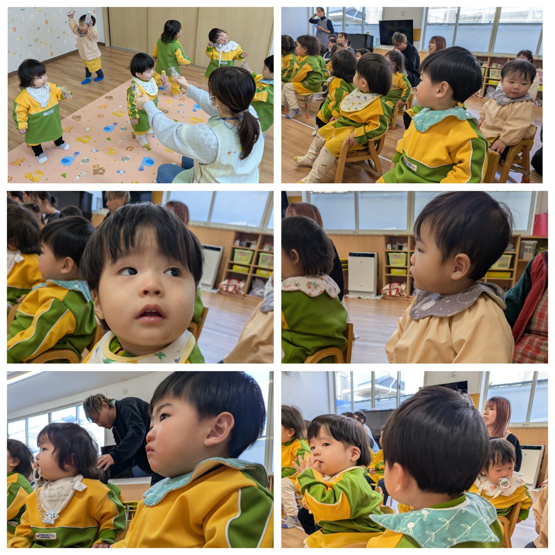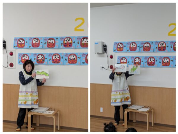 ちゅうりっぷ組 月刊絵本 今日は1月の月刊絵本を見ました。 自分で1ページずつめくって、楽しそうにお話を聞いていました。 少しだけ外にも出ています。「寒いね」と言いながら、たくさん走ったり、お家に入ったりしていましたよ。