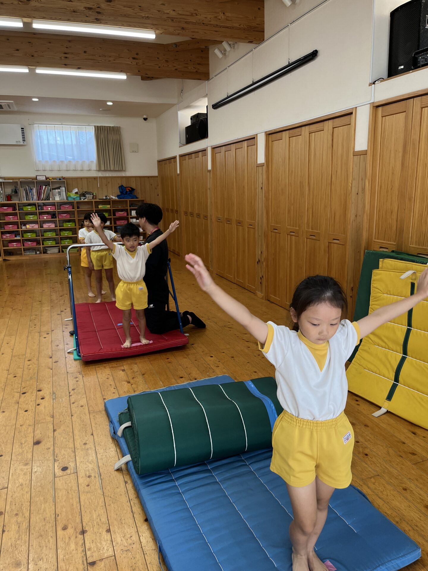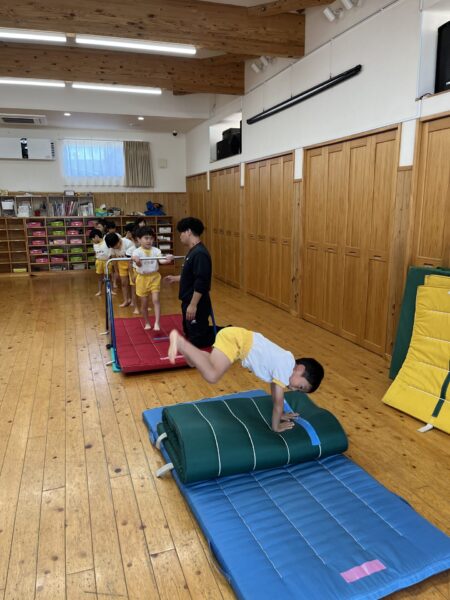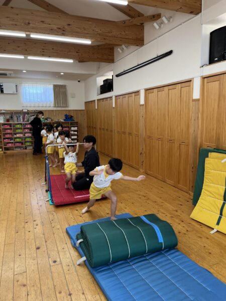 体操教室で逆上がりと側転を練習しています!