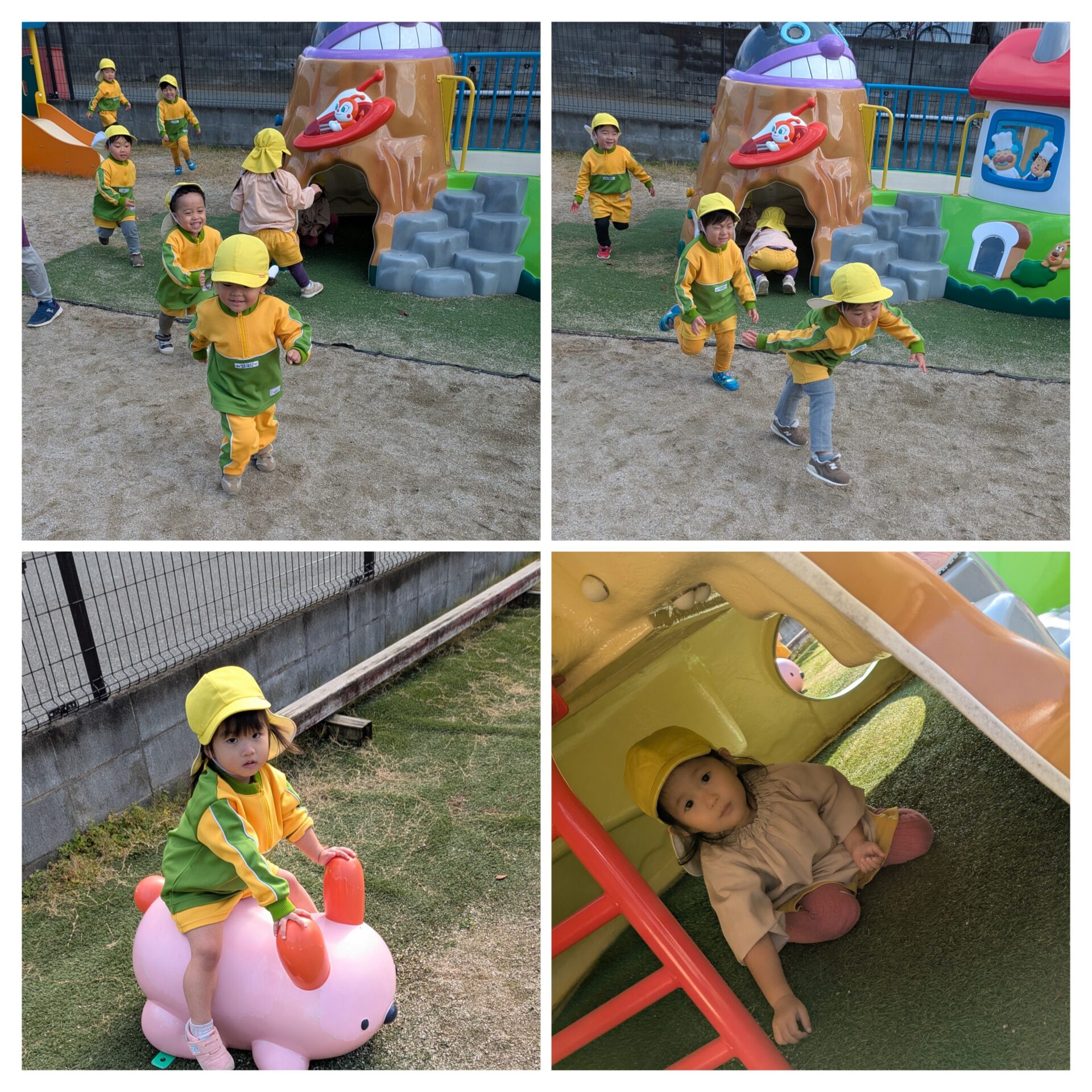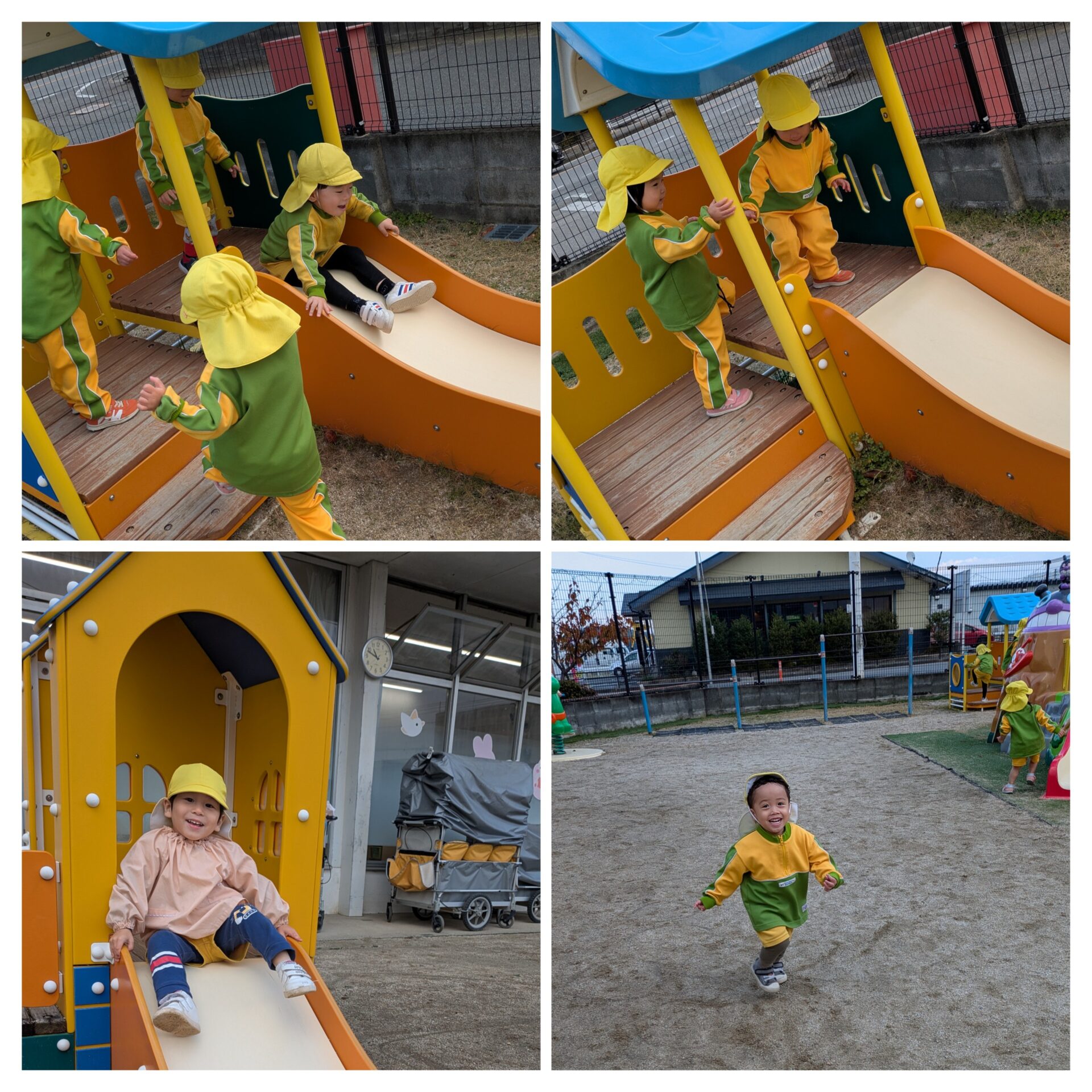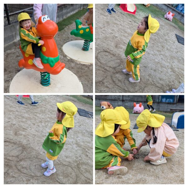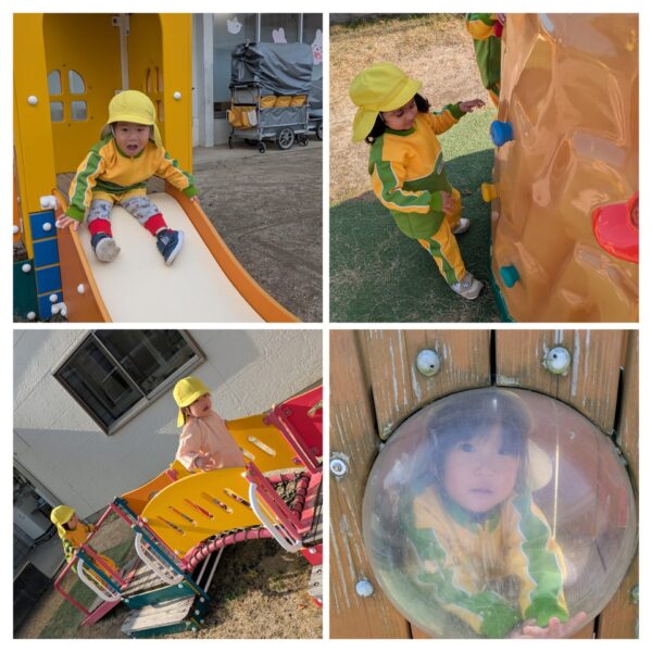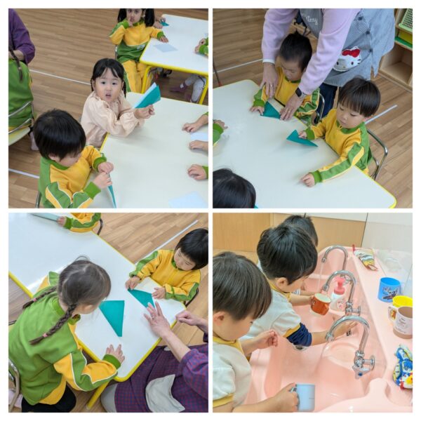 ちゅうりっぷ組 外遊び·クリスマスツリー制作 元気に外遊びをしています✨ 最近は友達同士声を掛け合って、「こっちおいで〜」「まてまて〜」と一緒に遊ぶ姿が増えてきました。 寒さに負けずにいっぱい体を動かしてますよ😀 折り紙でクリスマスツリーを作ったり、外遊びのあとは手洗い·うがいを頑張ってます⭐