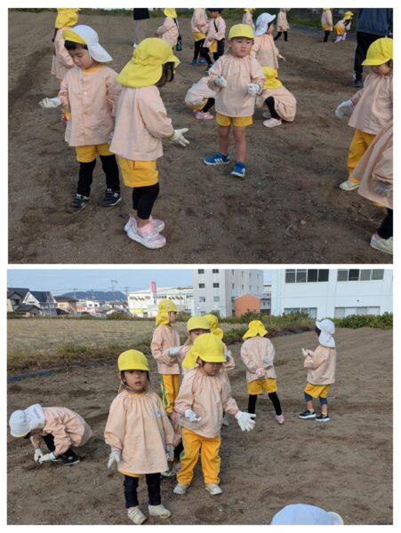 畑にれんげ草の種を撒きました。たくさんお花が咲くのが楽しみです😊お散歩して帰ってきたあとは園庭で遊びました!