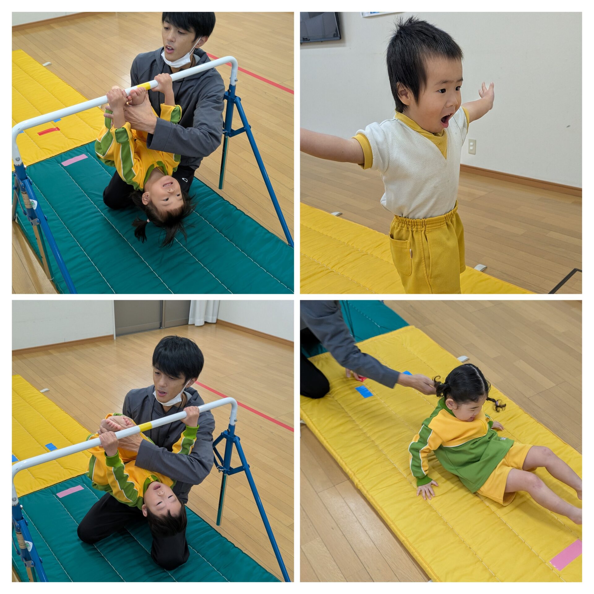 来月の発表会に向けて、鉄棒とマットを頑張ってますよ!