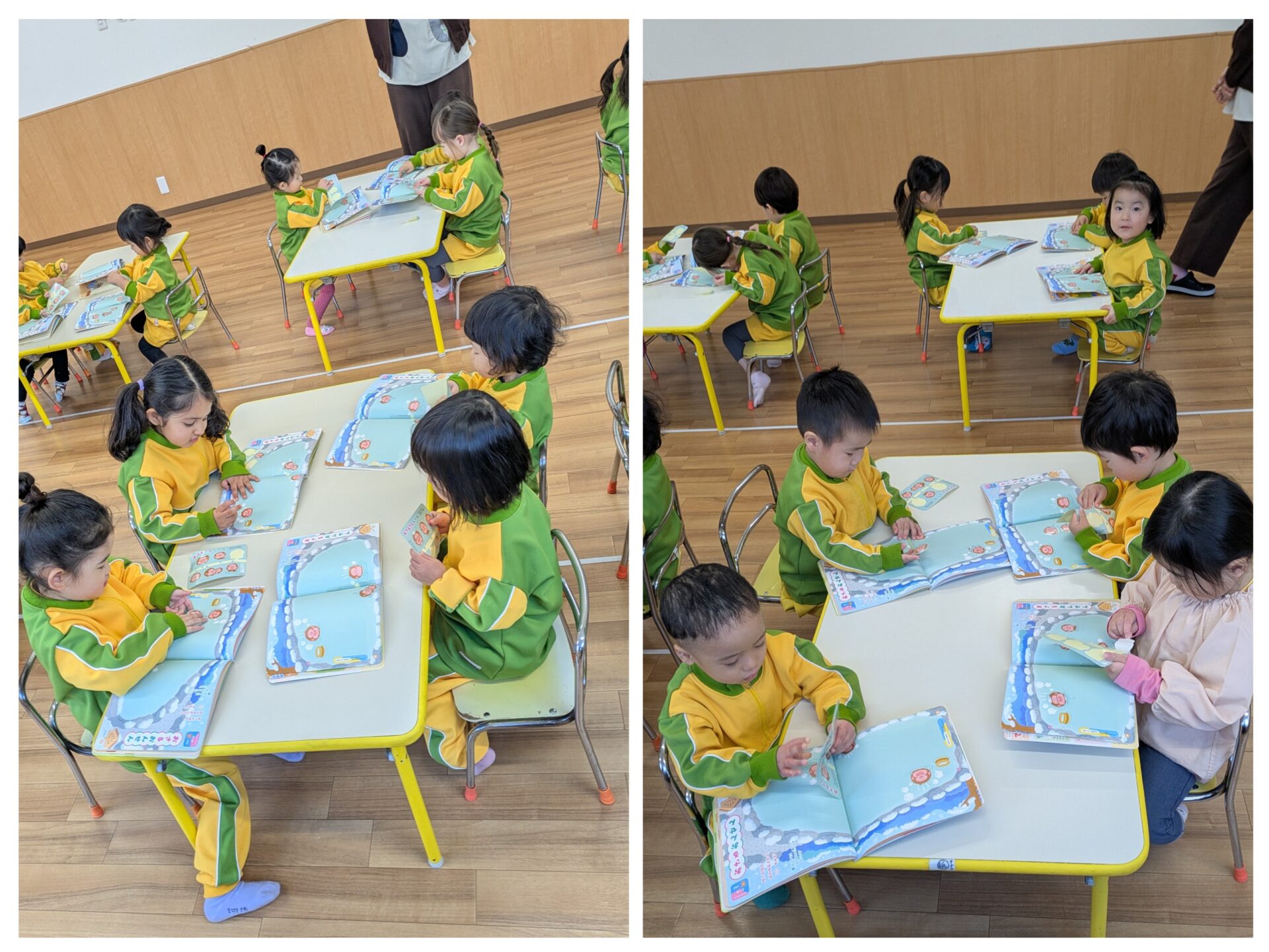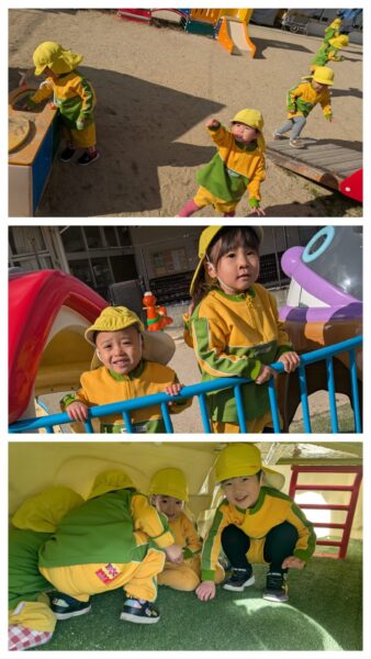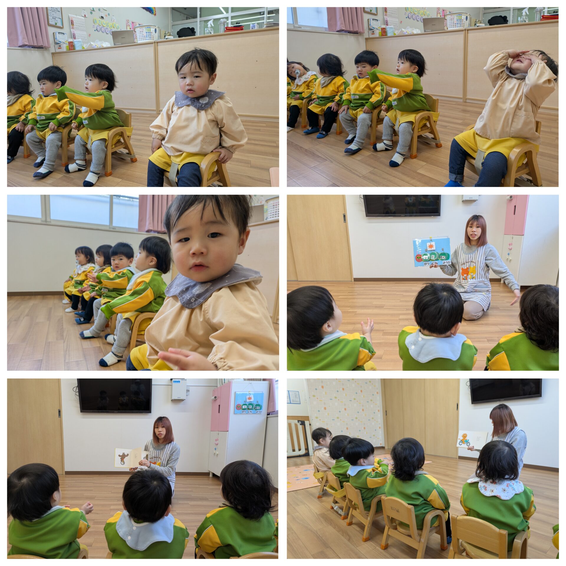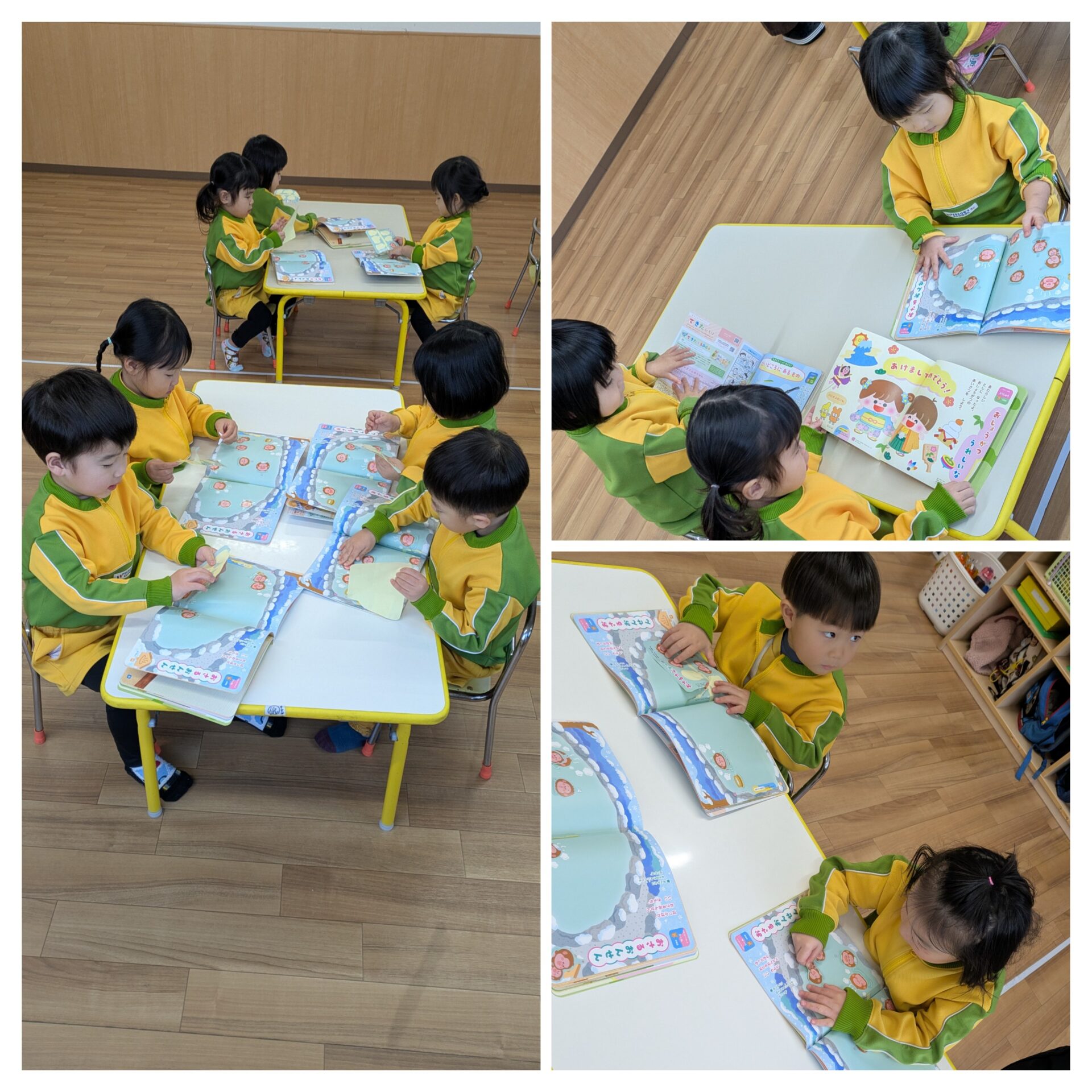 ちゅうりっぷ組 月刊絵本 今日は1月の月刊絵本を見ました。 自分で1ページずつめくって、楽しそうにお話を聞いていました。 少しだけ外にも出ています。「寒いね」と言いながら、たくさん走ったり、お家に入ったりしていましたよ。