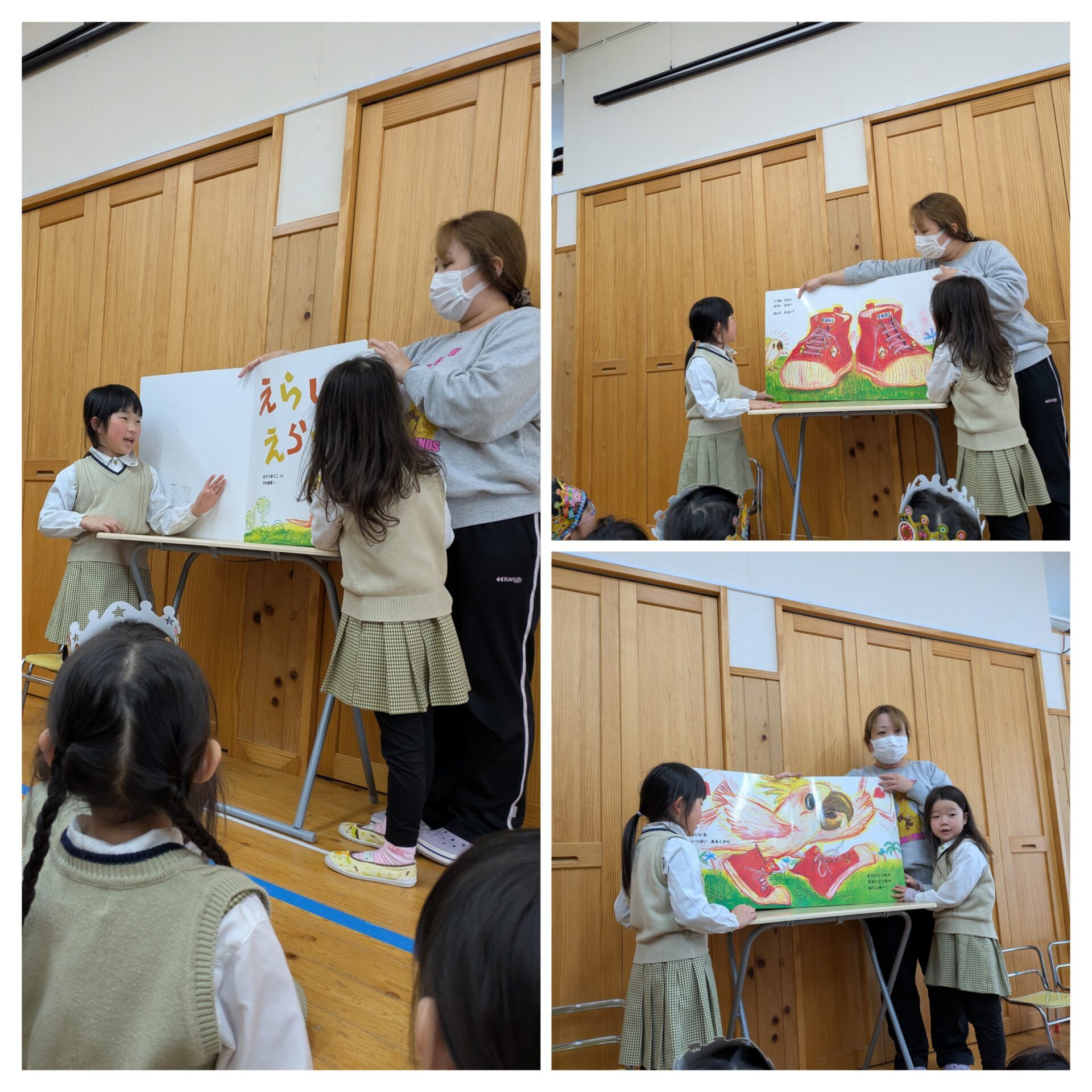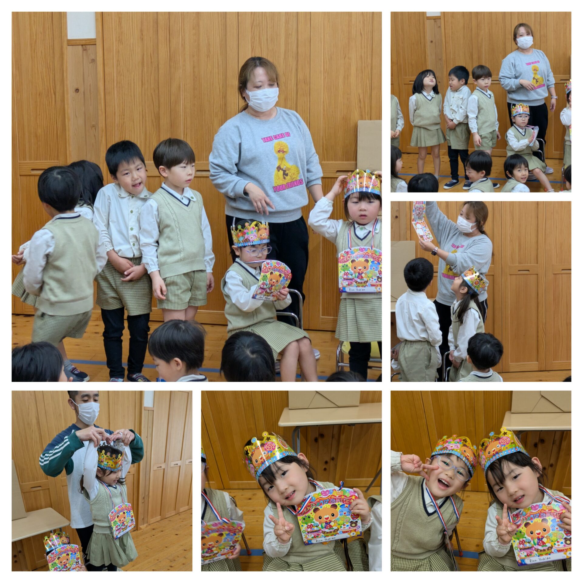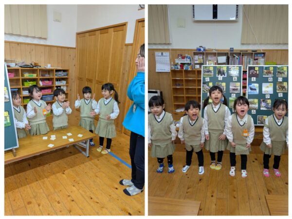 February Birthday Party Lion class girls read us a biiig interesting book. Happy Birthday, Yui, Noa, Rion and Naomi sensei😁