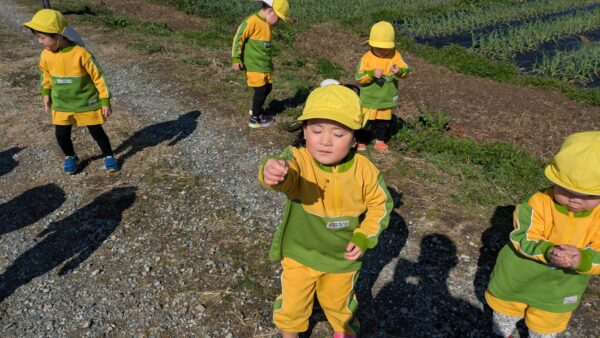 あぜ道ではたくさん走ったりお花を探したりしました。