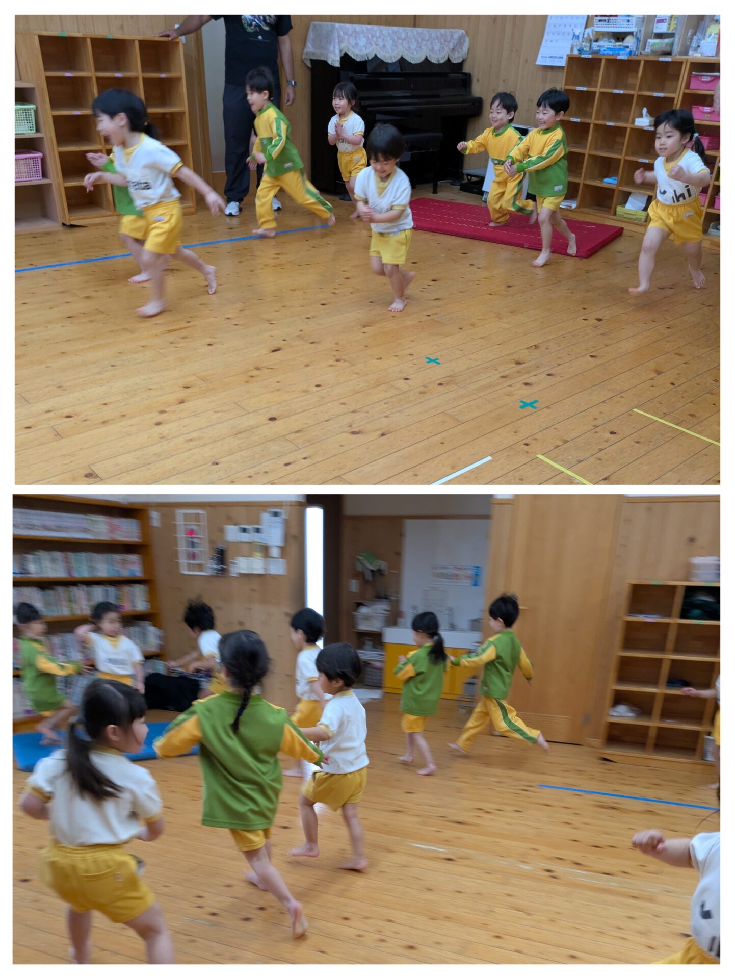 Last gym lesson We enjoyed playing tag and walking with our bottoms. Our next gym lesson, we will be zebra members.