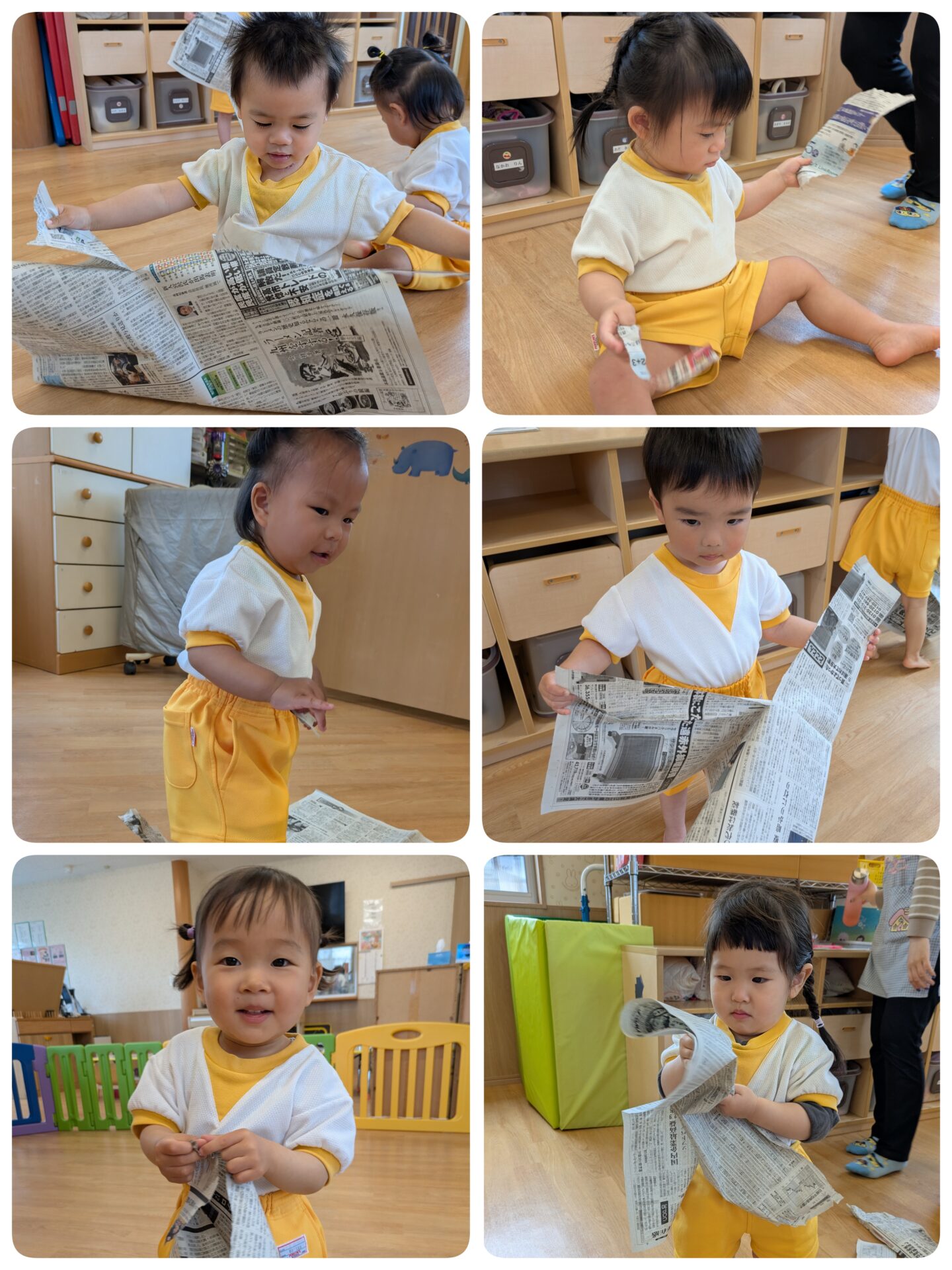 今日のつぼみさんは新聞紙遊びをしました🥰