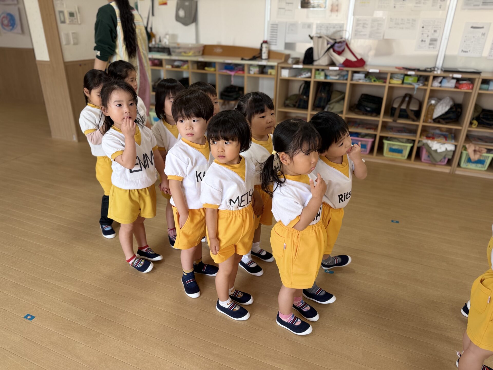 We learn ”Greetings and our feelings”  everyday 🥰Today we practiced for the sports day 🤩, let’s have fun together 🥰