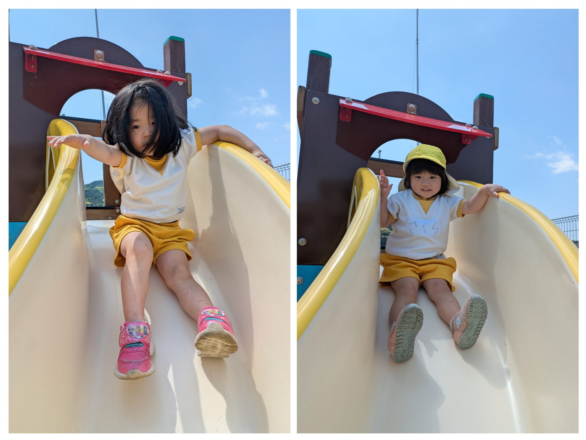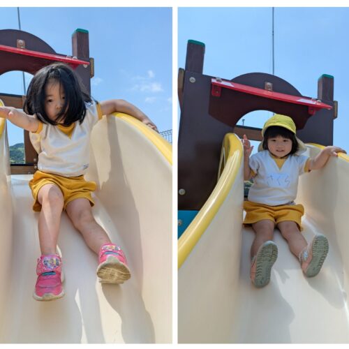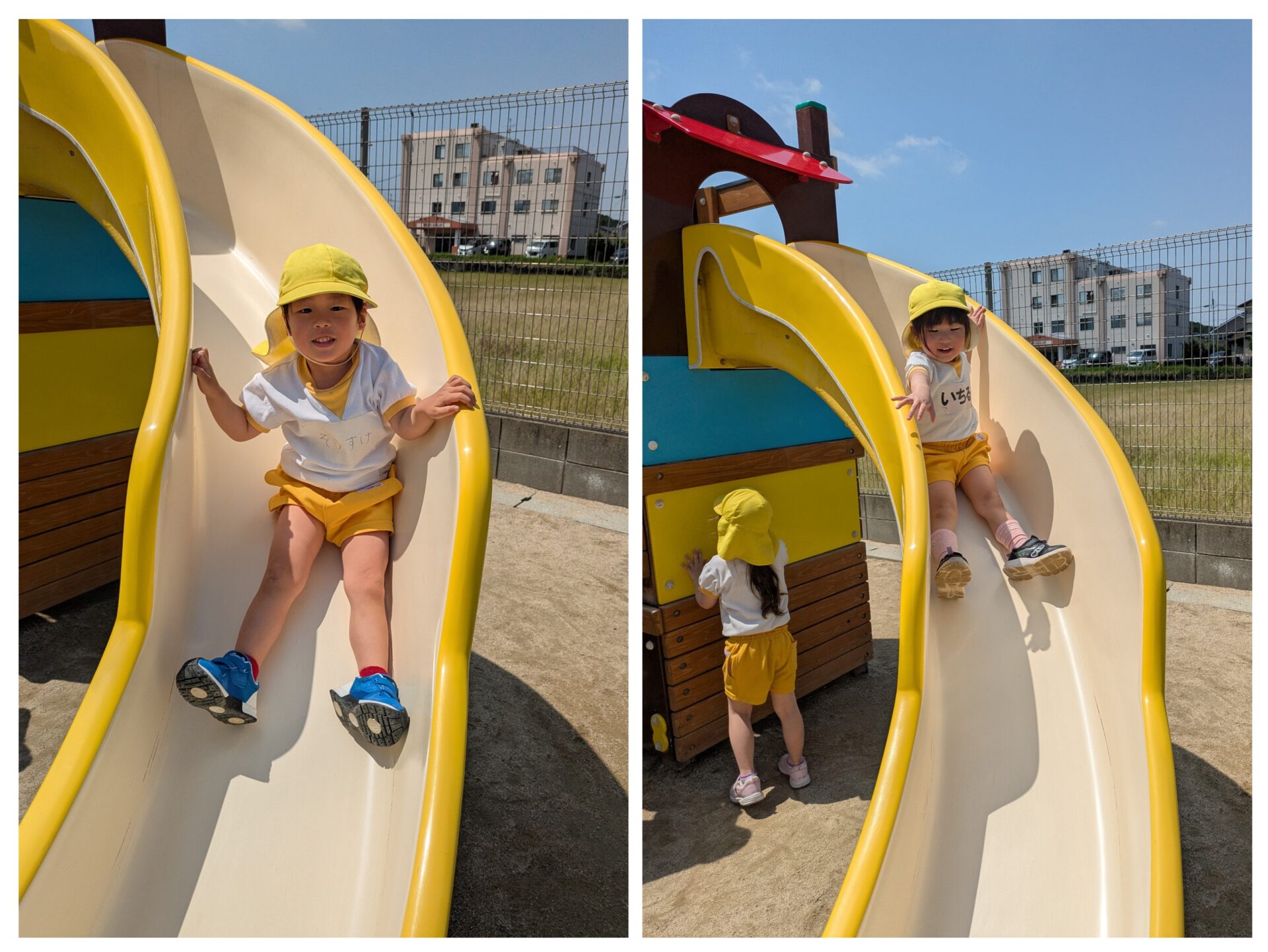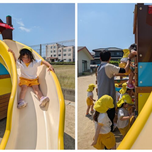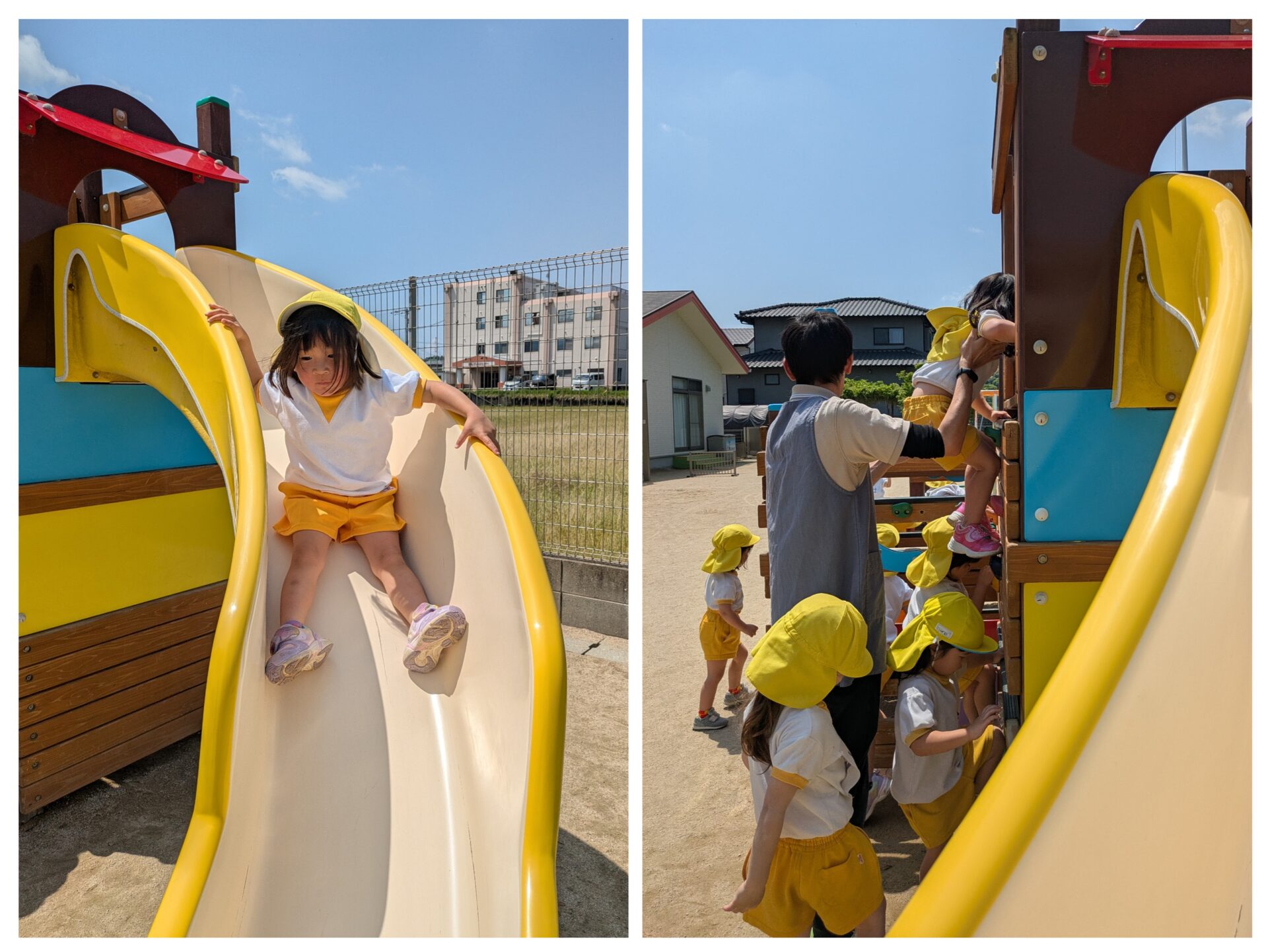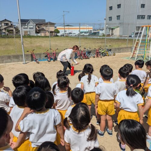 うめ組 避難訓練 今日は新園舎になって初めての避難訓練(火災)がありました。 事前に避難訓練の説明をしていましたが、いざ放送が鳴ると泣いてしまう子も……😅 でも、先生のお話をしっかりと聞いて、園庭まで避難することができました! 先生のお話もしっかり聞いて、「お·か·し·も·ち」のお約束も確認しました。 先生が消化器で火を消すところ、「がんばれ〜」と応援しましたよ😊 避難訓練後は、第二園舎で遊んでみました✨ アスレチックを登ろうと、頑張っていました💪